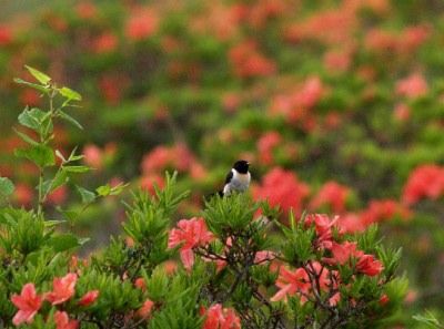 レンゲツツジとの組み合わせを夢中でねらっていました。